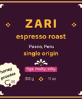 Zari, meaning golden thread, is named for the fine line that quietly holds everything together. This honey-processed espresso comes from a small group of producers in Pasco’s central highlands, near the Oxapampa–Asháninka–Yánesha Biosphere Reserve. Steep terrain and shifting microclimates slow cherry development here, allowing for careful, detailed processing that makes microlots like this possible.